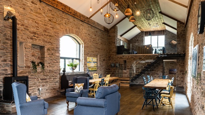 Sisterhood Sleeps: Check into beautiful barns at The Courtyard Wales near Ferryside – with three different barns sleeping between 8-48 guests as well as hot tubs and an indoor swimming pool.